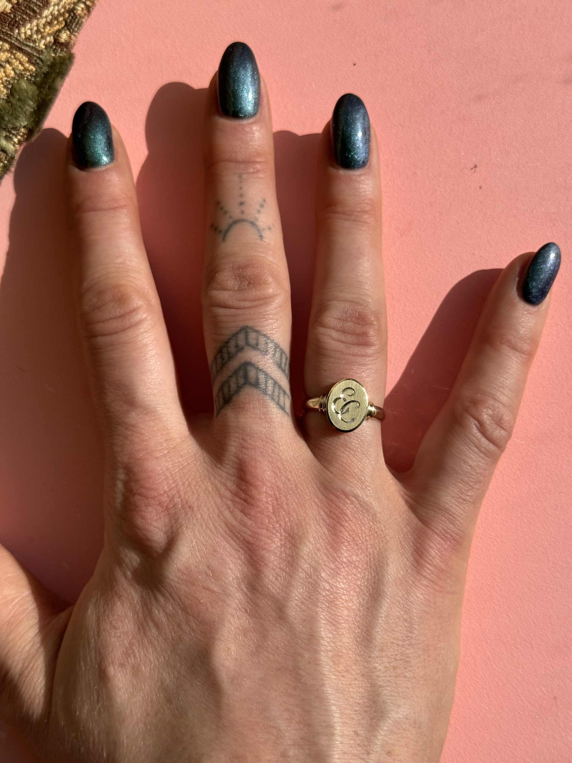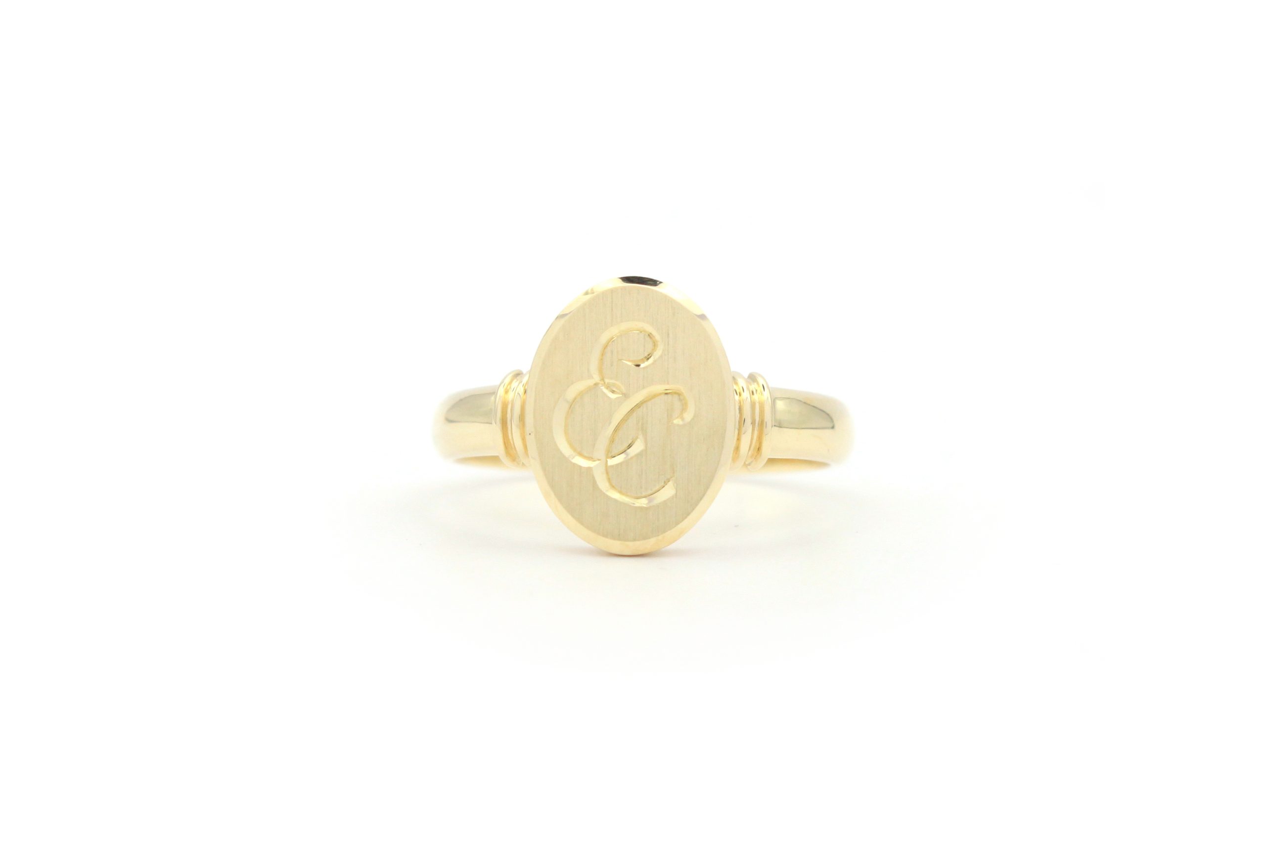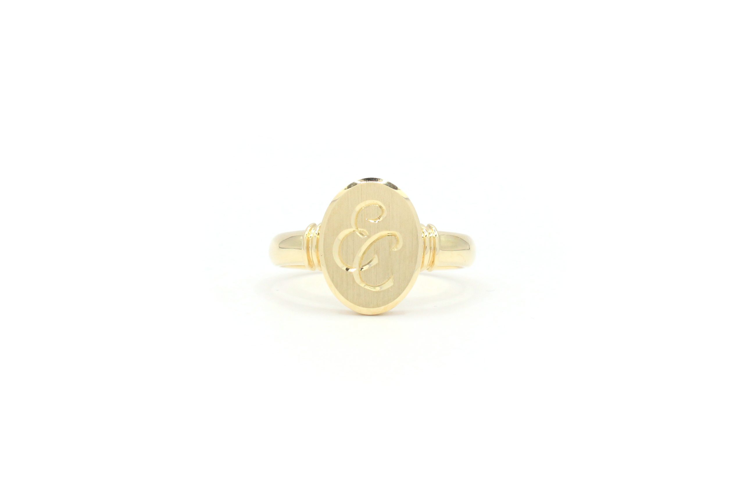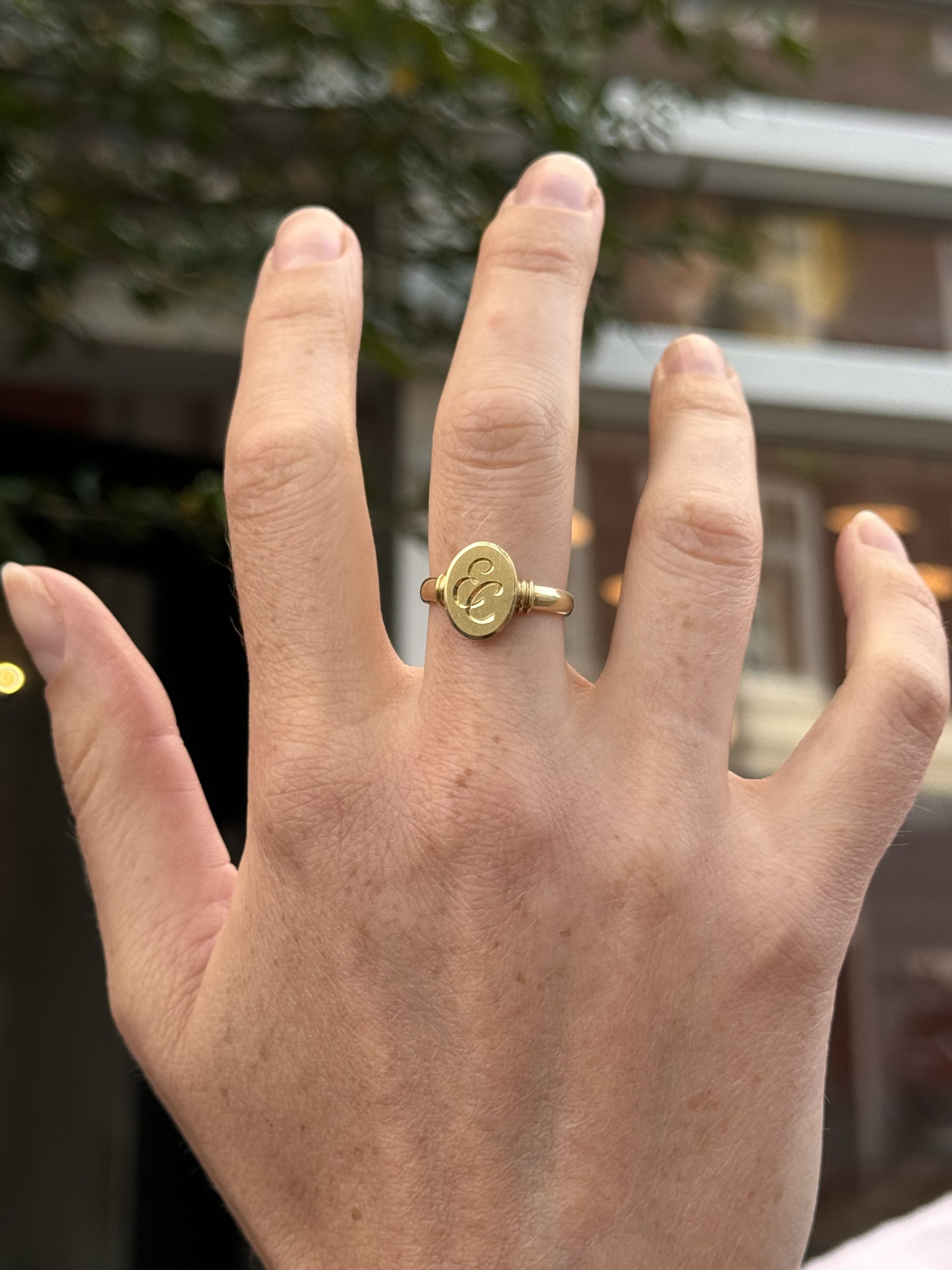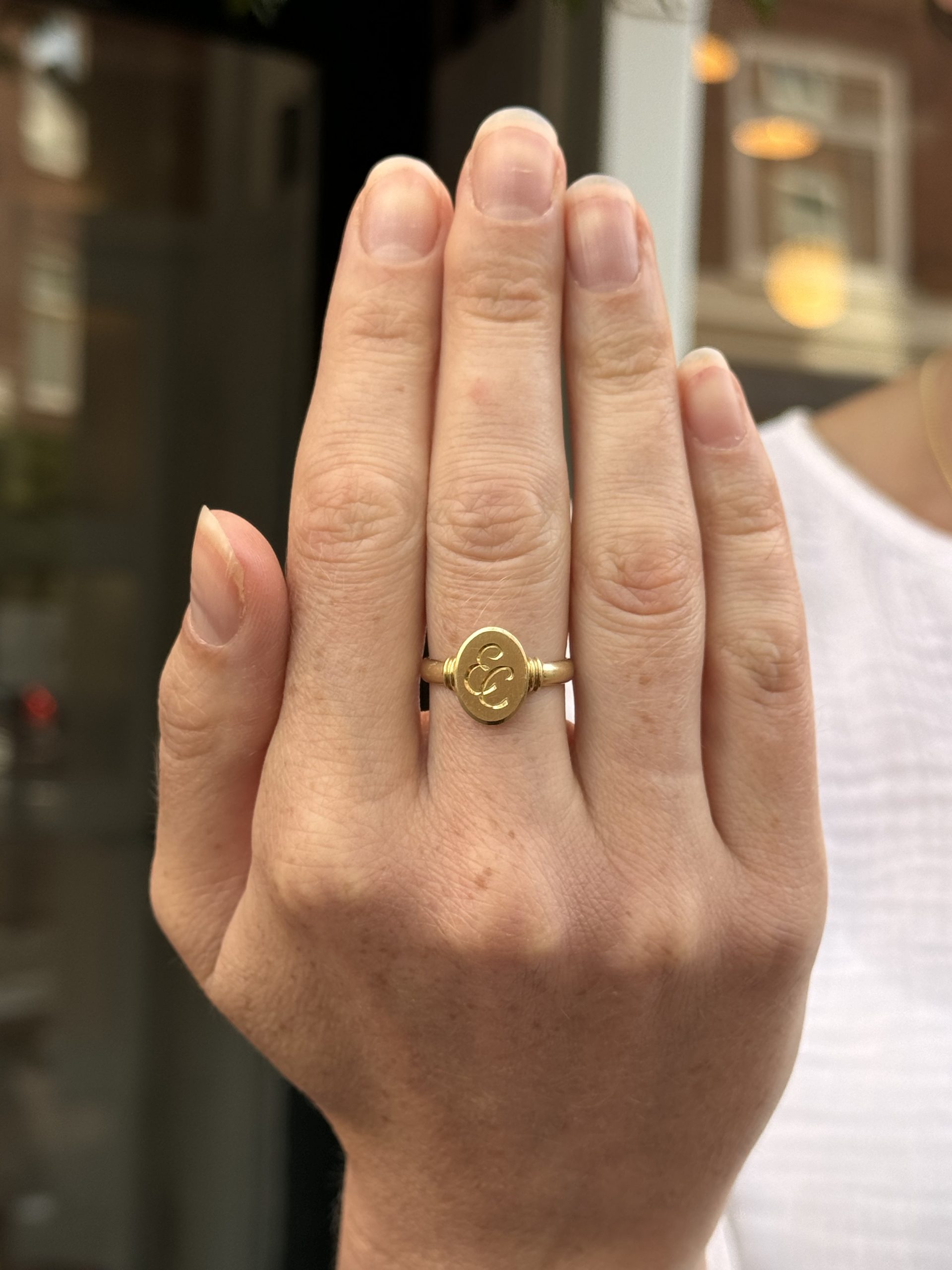 De Classic Oval Signet Ring is vervaardigd uit massief goud en heeft een zacht geborsteld ovaal vlak — perfect voor een persoonlijke gravure, zoals een initiaal, monogram of symbool met betekenis.